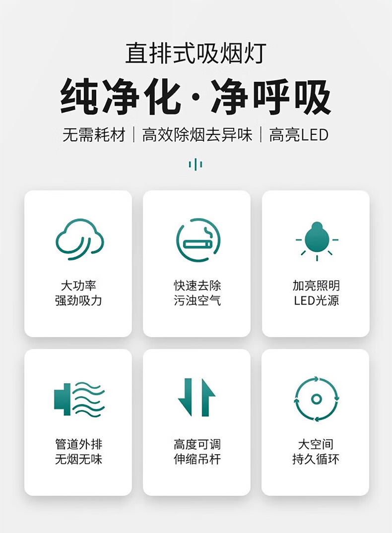 - 直排吸煙凈化燈強(qiáng)勁環(huán)吸四邊燈光D8-W